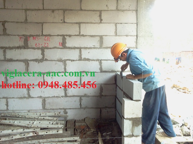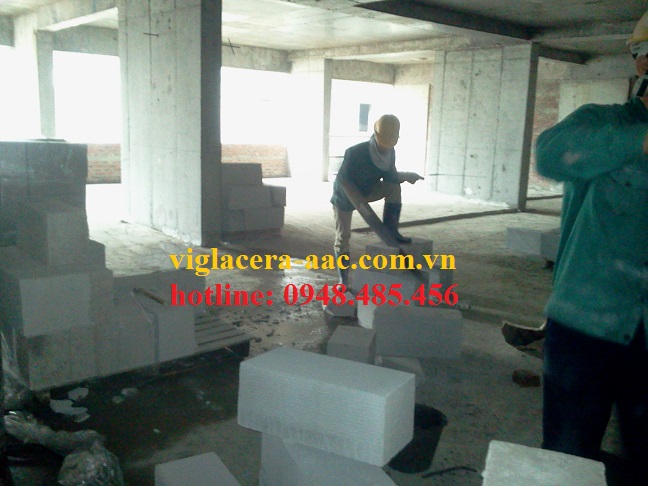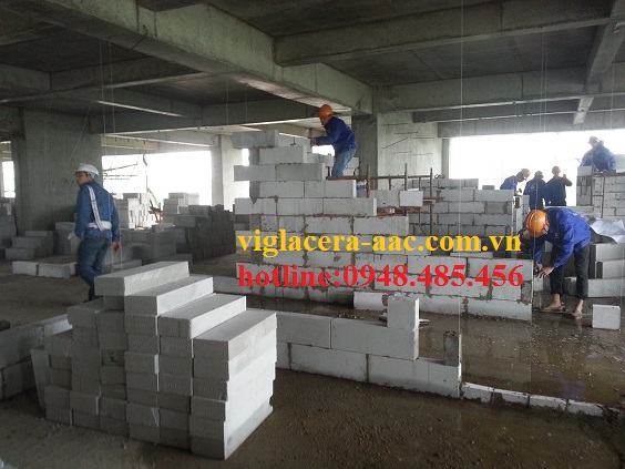 Gạch viglacera kích thước 600x200x200mm xây chưng cư MANDARIN GARDEN nhà thầu Cotecons thi công