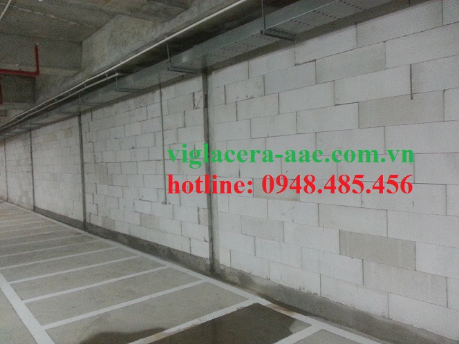 Bức tường xây gạch bê tông khí Viglacera không chát tại tầng hầm nhằm giảm tiếng ồn